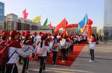 清晨,在激情澎湃的動(dòng)員大會(huì)結(jié)束后,“遠(yuǎn)征”隊(duì)伍精神抖擻地從學(xué)校北門出發(fā)。