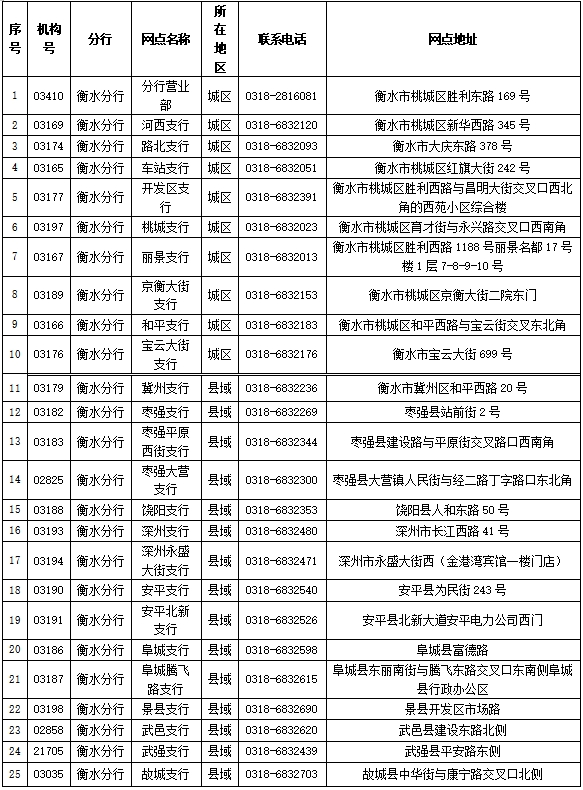 附件一:衡水市域內(nèi)中國(guó)銀行各網(wǎng)點(diǎn)地址和聯(lián)系方式。