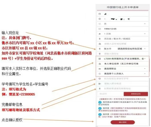 請(qǐng)您掃描下方中國(guó)銀行的二維碼,填寫家長(zhǎng)的個(gè)人信息。(填寫信息時(shí),行業(yè)、職業(yè)、工作單位一定要匹配,如果不一致,還要去銀行柜臺(tái)更新。如果不更新,卡片會(huì)被凍結(jié)。),請(qǐng)于8月29日上午12點(diǎn)之前完成信息填寫。信息填完后銀行制卡,開學(xué)時(shí)由班主任把卡發(fā)到家長(zhǎng)手中,家長(zhǎng)不必去營(yíng)業(yè)廳辦理。信息填報(bào)過程中如有問題,可隨時(shí)撥打客服電話:0318-6832402(優(yōu)先撥打)、6832401 進(jìn)行聯(lián)系!