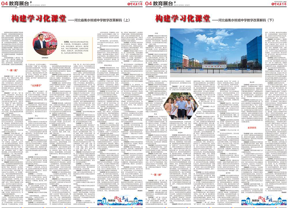 衡水桃城中學(xué)《學(xué)習(xí)化課堂的構(gòu)建研究》已被河北省教育科學(xué)研究所確立為重點課題,并被《中國教育報》連續(xù)兩天用整版篇幅進行了專題報道。