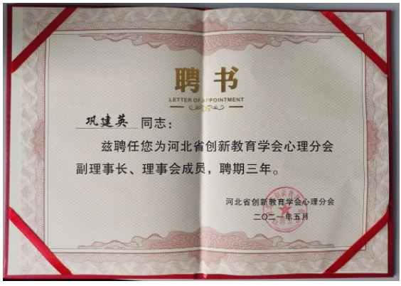 32.衡水桃城中學(xué)學(xué)谷高中當(dāng)選為河北創(chuàng)新教育學(xué)會心理分會理事會單位成員